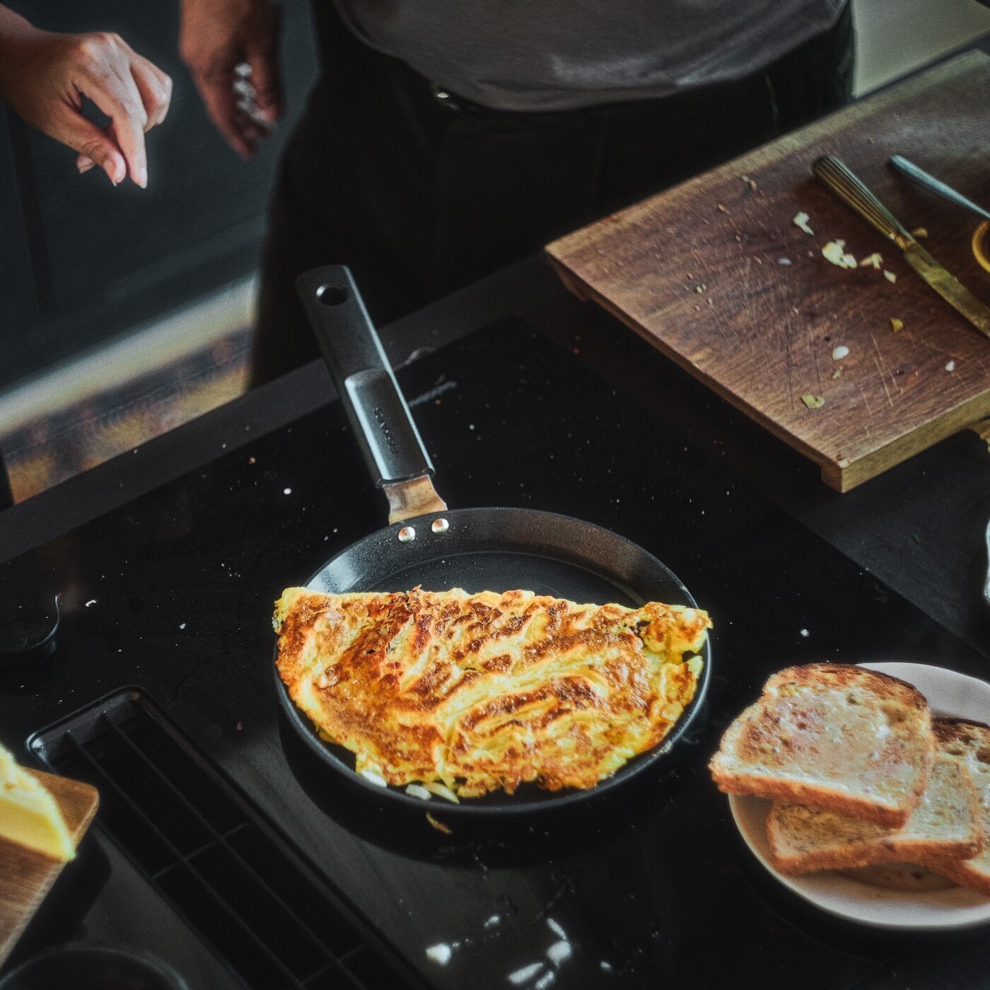 Och även om din keramiska stekpanna har non-stick-beläggning är det en bra idé att använda lite olja eller smör när du steker. Detta gör det lättare att lossa maten (och det smakar extra gott!). Kom ihåg att sänka värmen när fettet börjar bubbla. Sedan kan du bara börja tillaga.